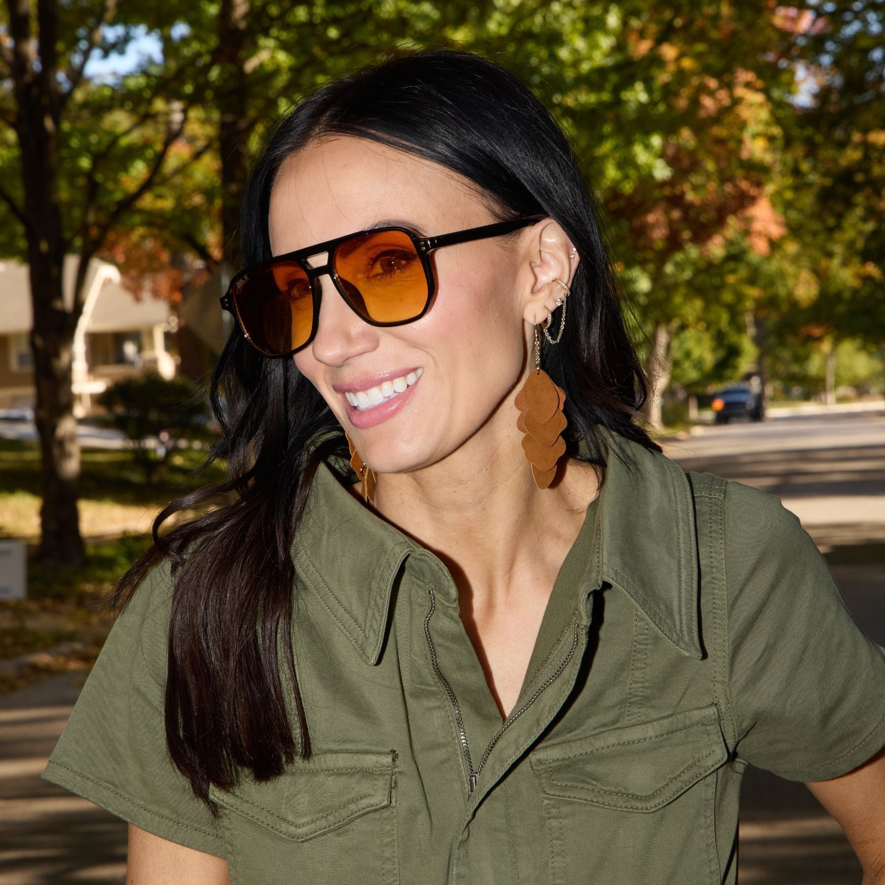 Embrace timeless style with Amber Skye Sunglasses, featuring a sleek black frame and warm amber lenses that offer both sophistication and comfort. ✨ These aviator-style sunglasses are incredibly lightweight, perfect for all-day wear, and designed with comfortable acetate nose pieces for a secure fit. Protecting your eyes beautifully, these shades add a chic touch to any sunny adventure. ☀️