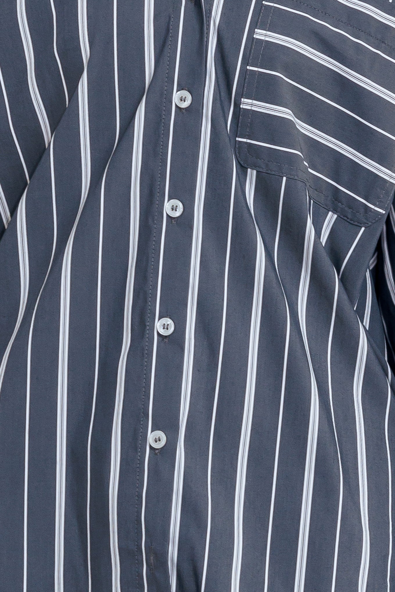 A striped woven top with contrasting collar/cuff and button-down.