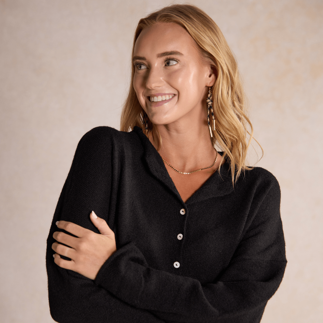 Elevate your accessory style with our Black Sesame Denver Cord Earring, a truly unique and lightweight statement piece. ✨ These artisanal earrings are meticulously crafted from durable nylon paracord, gracefully suspended from your choice of 14k gold filled or rhodium-plated sterling silver hooks for sensitive ears. Let these one-of-a-kind, bohemian-inspired earrings be your perfect companion for everyday adventures or special occasions, adding a touch of laid-back elegance to any ensemble. 🌿