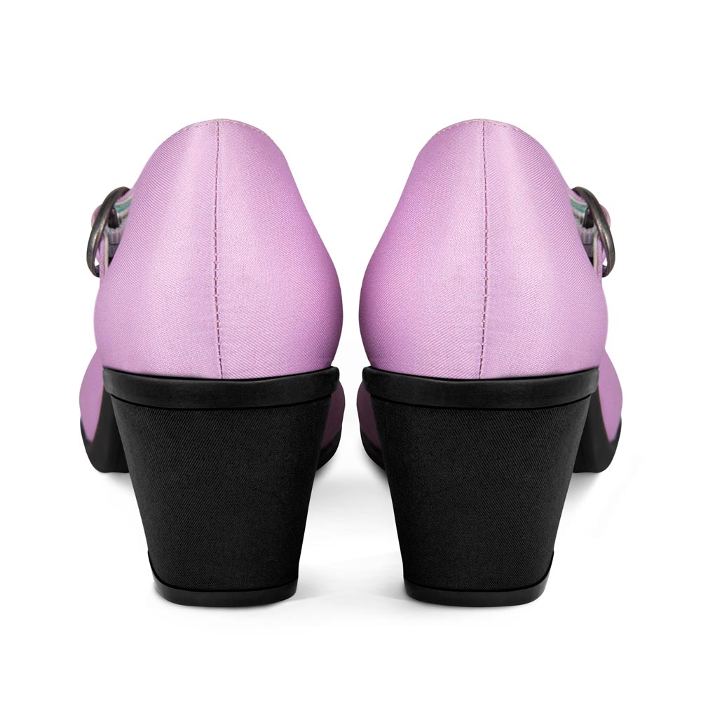 The upper part of the shoe is made of fabric that has been printed on. The shoe has a synthetic inner lining and a cushioned sole that provides arch support for added comfort. The sole is made of rubber and has a heel height of 2.5 inches (6.5 cm). The shoe also features an adjustable buckle strap and non-removable accessories. It is proudly vegan and customers can refer to the Size Chart to ensure a perfect fit. The shoes come in a variety of designs and customers are encouraged to collect them all.