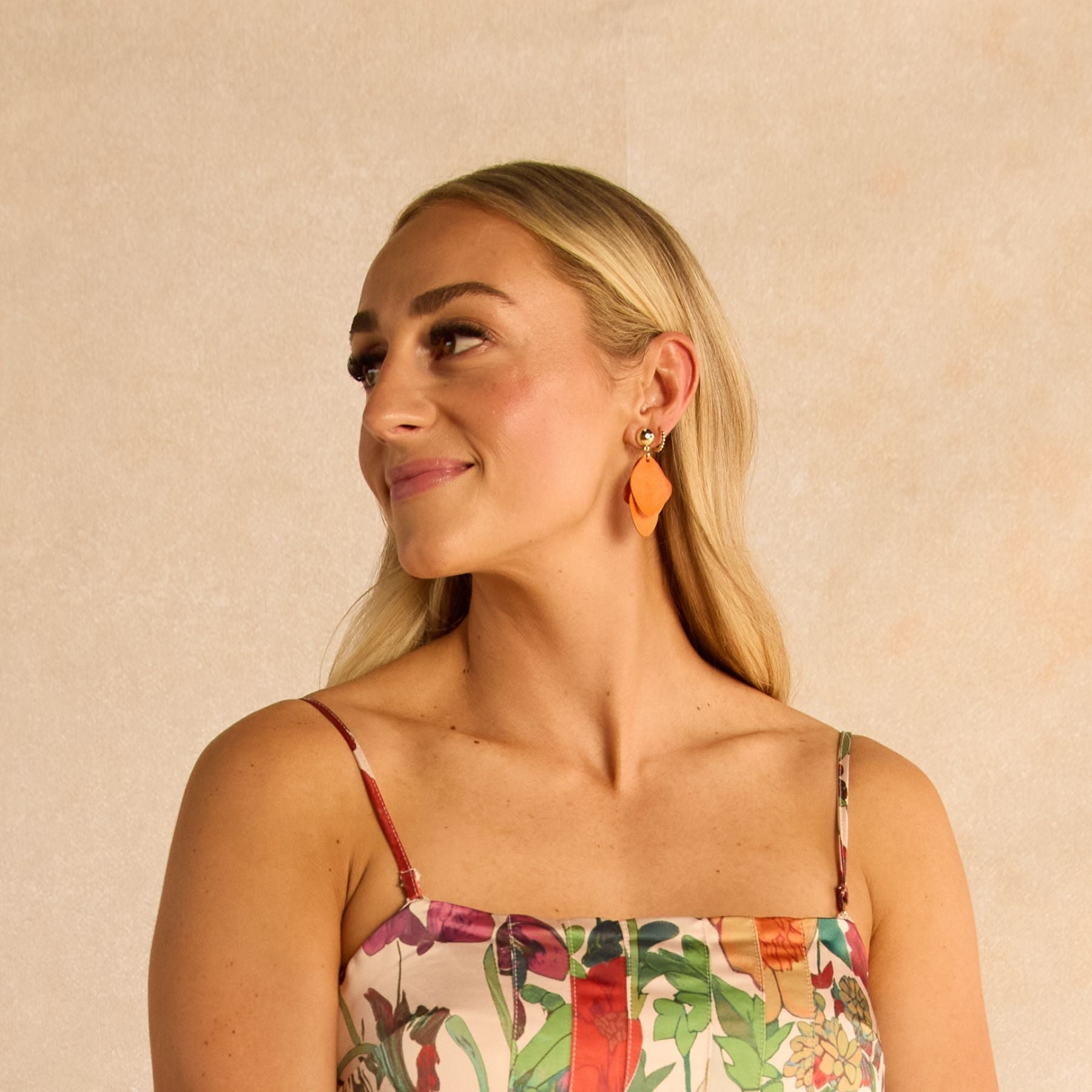 Embrace effortless bohemian charm with the Clementine Weston earrings, a fresh interpretation of classic leather design. 🌸 Crafted from luxuriously soft Clementine Leather, these free-flowing statement stud earrings feature your choice of gold or silver hardware for a touch of refined elegance. Their lightweight design ensures comfortable wear, while the subtle movement beautifully catches the light, adding a captivating dimension to your look. ✨