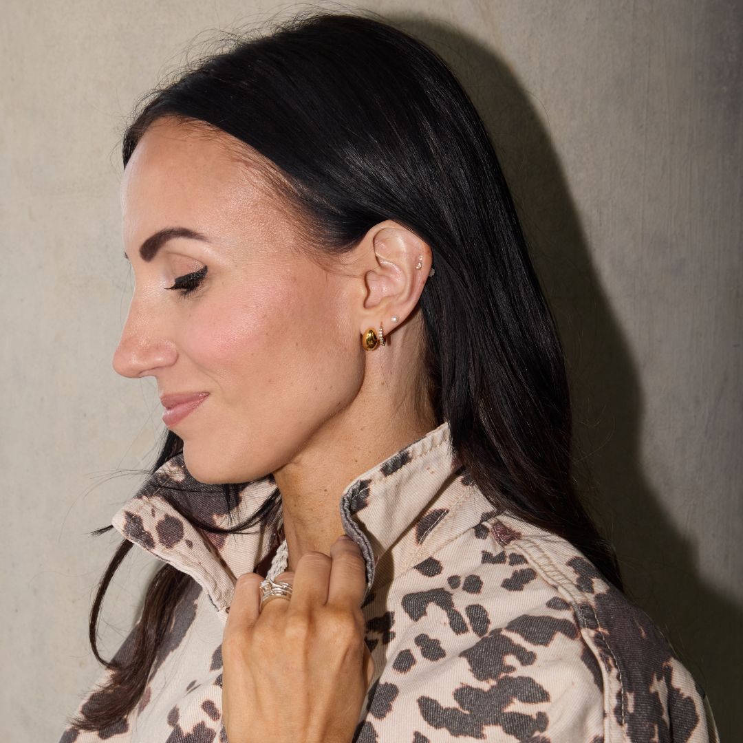 Discover our Gold Dome Studs, designed for everyday wear and versatile styling. ✨ These stunning earrings are PVD-plated and fully waterproof, offering both exceptional style and lasting functionality. The advanced PVD process creates a durable, bonded metal layer, providing robust protection against moisture while enhancing their radiant aesthetic. Perfect for any occasion or piercing location, these studs blend beauty with resilience seamlessly. 🌿