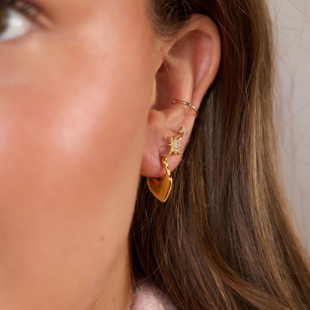 Embrace effortless charm with our Gold Heart Lock Huggies, a beautifully minimalistic interpretation of a classic symbol. ✨ These delightful earrings feature lustrous 14k gold plating for a touch of everyday luxury that's gentle on your skin. Designed with a comfortable hinged clasp, they offer easy wearability and become your go-to accessory for any piercing. 💖 Their sweet, subtle design makes them a versatile essential for every day, blending seamlessly with your boho-inspired collection. 🌿