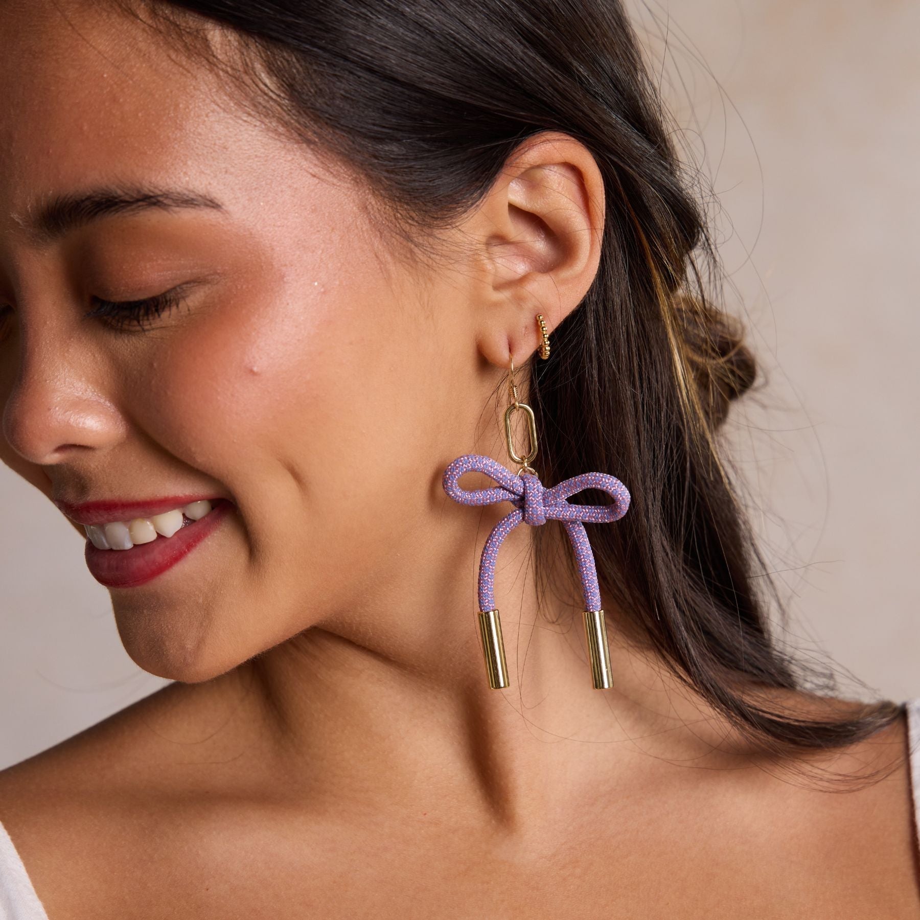Infuse your style with the ethereal charm of our Lavender Simone Cord Earring, a fresh interpretation of our beloved cord designs. ✨ Crafted from lightweight nylon paracord, these earrings offer a comfortable feel and a beautiful drape, perfect for everyday wear or special occasions. Choose between radiant 14k gold-filled or sleek rhodium-plated sterling silver hooks to complement your unique aesthetic. These elegant earrings are ideal for adding a soft, yet captivating, touch to your ensemble. 🌸