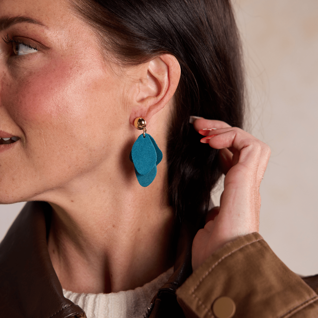 Step out in radiant style with our Peacock Suede Weston earrings, a truly vibrant and unique take on a beloved design. ✨ Crafted from luxurious peacock suede leather, these lightweight earrings offer a stunning pop of color that's perfect for elevating your everyday look. Experience exceptional comfort and effortless style with this beautiful accessory, designed to bring joy and a touch of bohemian flair to your day. 🌿