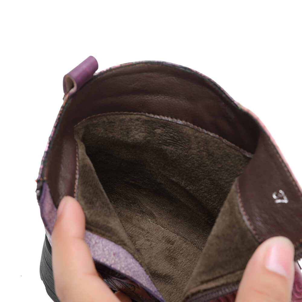 Step into unique style with these Retro Handmade Leather Painted Floral Flats Boots, where vibrant artistry meets blissful comfort. ✨ Crafted from premium cowhide leather, each pair boasts hand-painted floral designs and hand-stitched detailing, creating a truly distinctive look. The plush short faux fur lining and supportive 3mm latex pads ensure breathability and exceptional comfort with every stride, while the wear-resistant rubber outsole and solid brass hardware provide lasting quality for your everyday adventures. 🌸