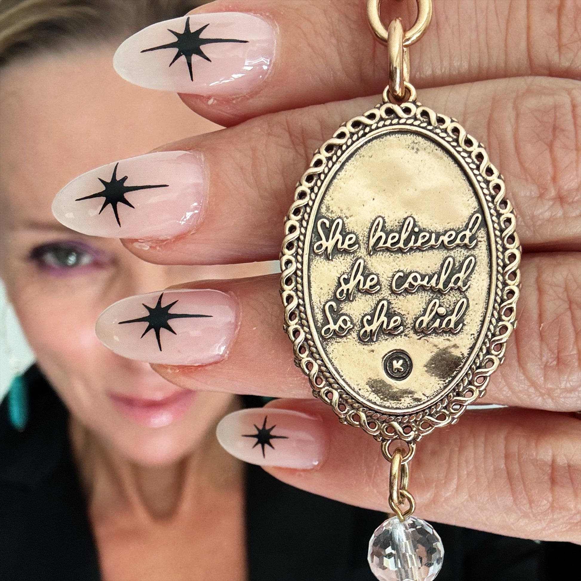 Embrace your inner strength with the "She Believed She Could Butterfly Choker Necklace" from Katia Designs! 🦋 This enchanting piece features a delicate 9mm brass-plated chain, gracefully adorned with a captivating 3D butterfly pendant. Each butterfly is beautifully accented by an 8mm faceted crystal quartz, adding a touch of sparkling elegance to your neckline. ✨