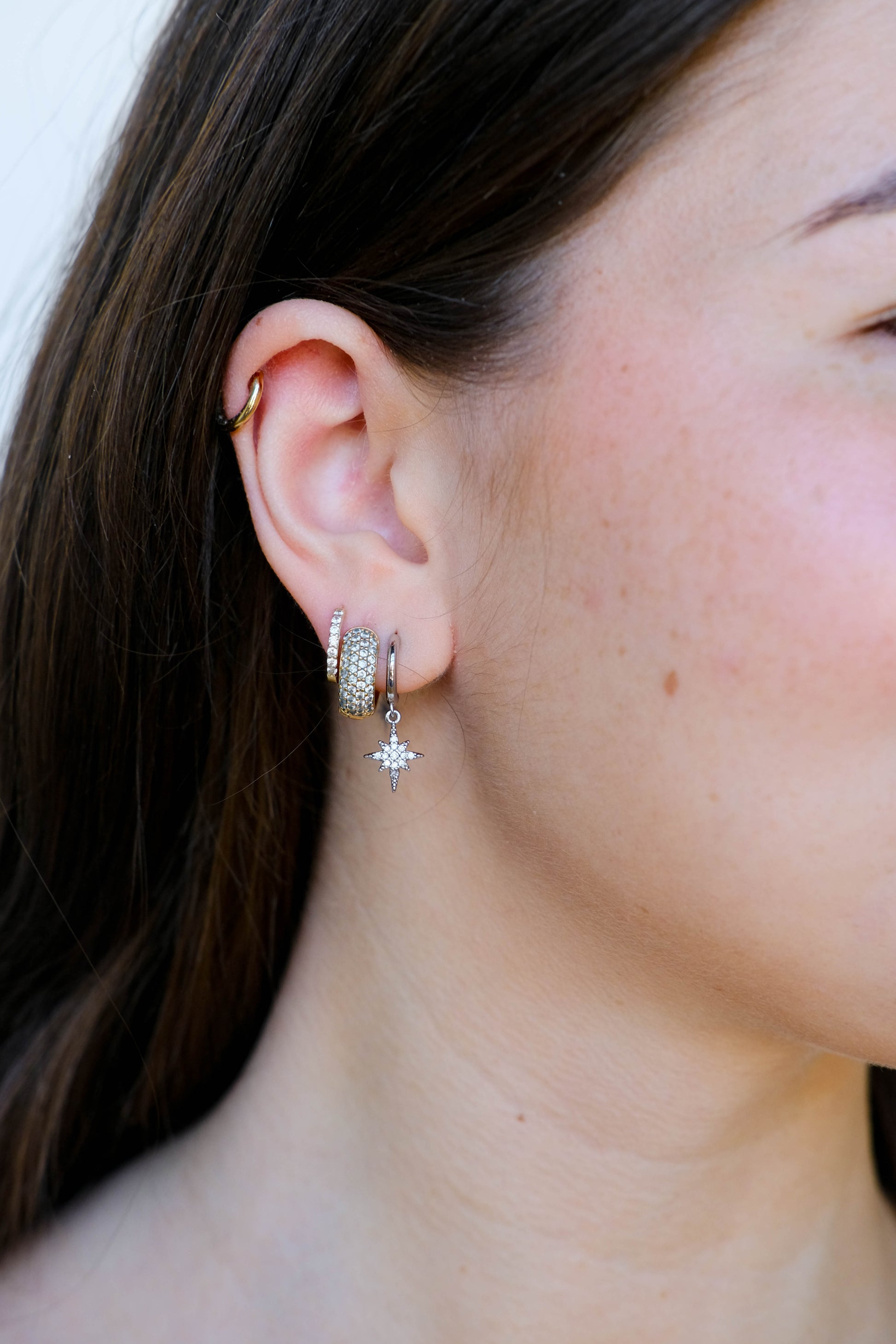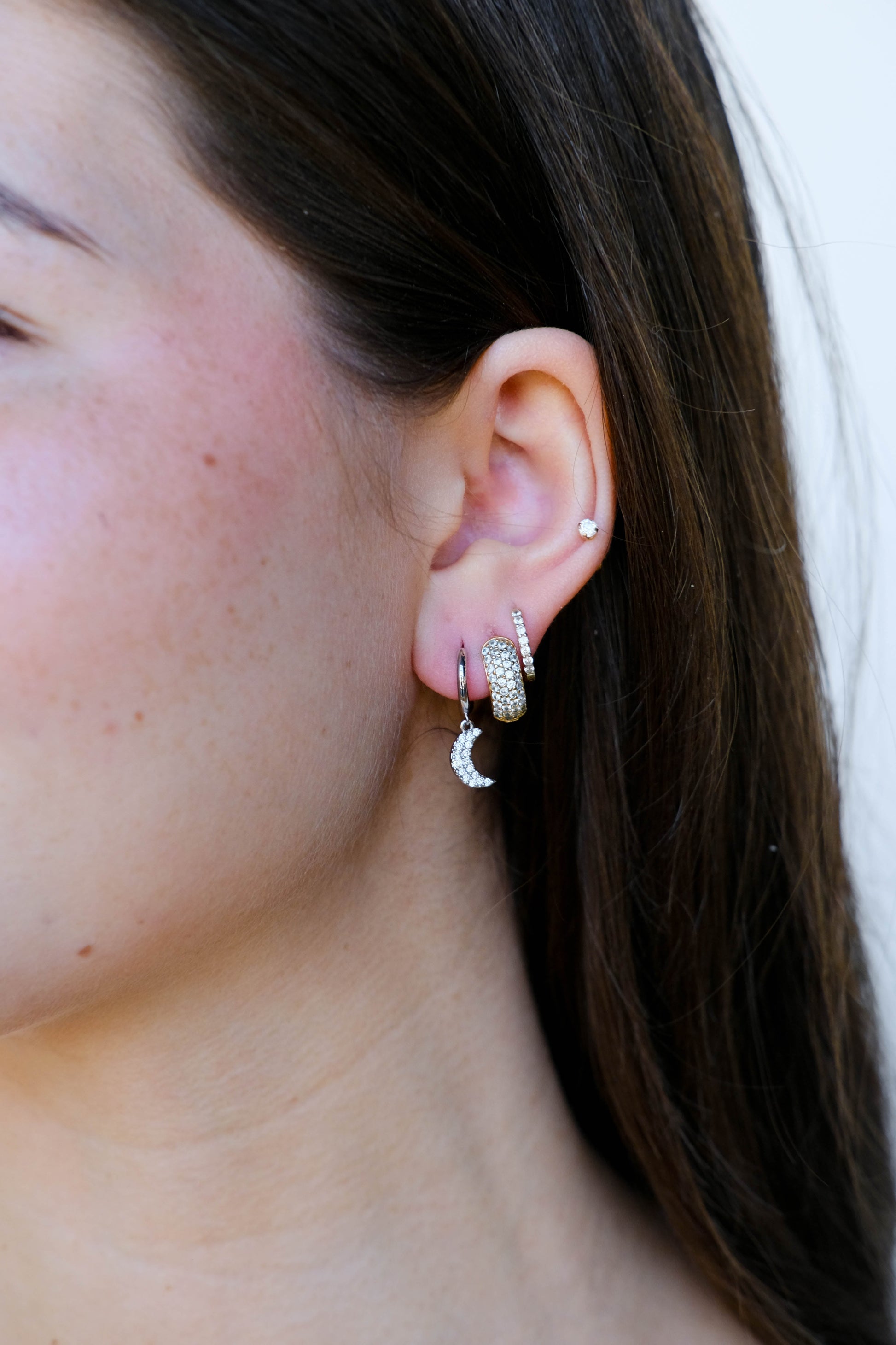 Add an enchanting asymmetrical accent to your ear stack with these celestial beauties! ✨ The dainty CZ stone-embellished Silver Moon and Star Huggies bring a charming celestial touch to any look, sparkling with subtle magic. Crafted with thoughtful detail, these earrings capture the free-spirited essence of bohemian style and add a delicate shimmer. They're perfect for embracing your inner stargazer. 🌙
