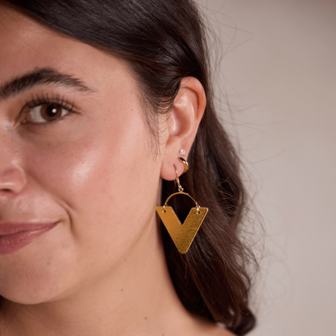 Adorn your ears with the Vintage Gold Sutton, a beautifully lightweight statement earring that captures attention with its geometric charm. ✨ These leather earrings, inspired by classic metallic hues, offer the elegant look of gold without the weight, ensuring comfortable wear all day long. Crafted to add a sophisticated touch to any ensemble, their timeless appeal makes them a versatile accessory for your bohemian wardrobe. 💫🌿