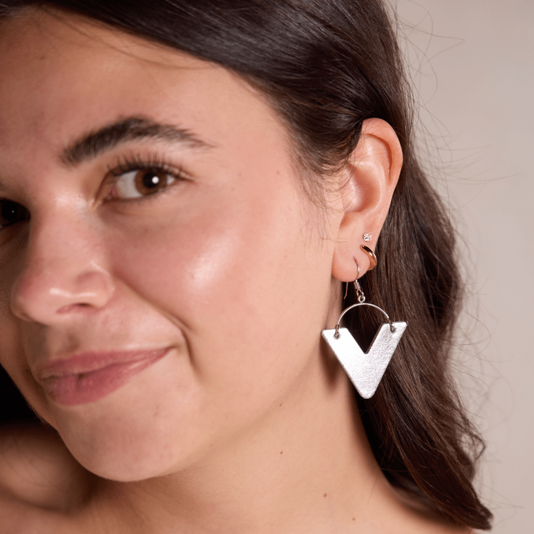 Adorn yourself with the Vintage Silver Sutton leather earrings, a lightweight geometric statement piece crafted to elevate your style. ✨ The unique vintage silver finish beautifully mimics the classic allure of metal, offering a timeless touch to any ensemble. 🌿 Experience effortless elegance with these stunning earrings, designed for comfort and captivating appeal. 💫