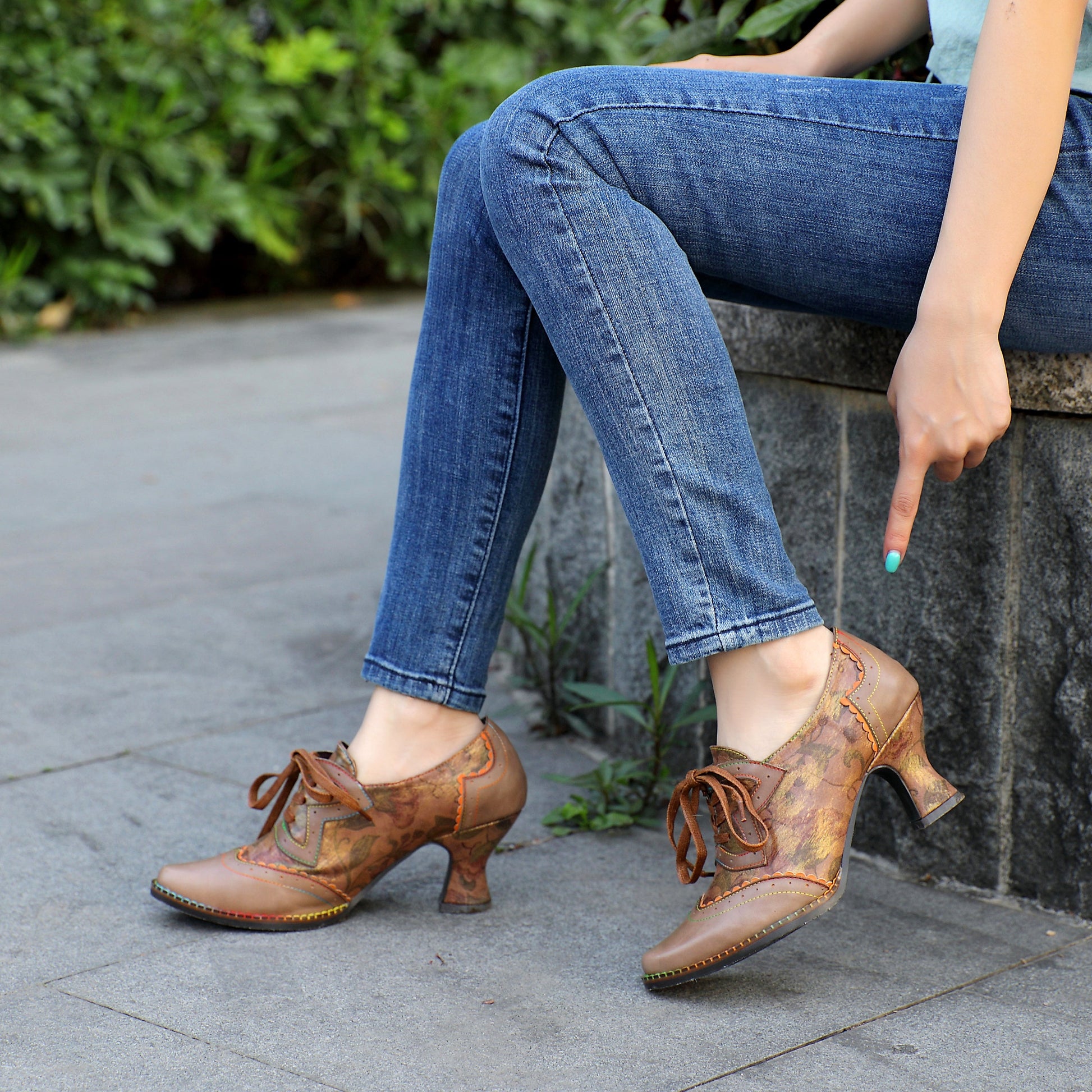Step into elegance with these exquisite handmade Shoes, perfect for a vintage-inspired wedding or any special occasion! ✨ Crafted from premium natural tanned cowhide leather, they offer breathability and odor-free comfort, gently embracing your feet with 3mm latex pads. These taupe beauties feature a charming floral design, a delicate kitten heel measuring 7.0 cm (2.7 inches), and a graceful lace-up closure for a truly unique and comfortable fit. 🌸 Feel the artisan touch with each hand-embossed and hand-painted detail, showcasing skillful craftsmanship in every step.